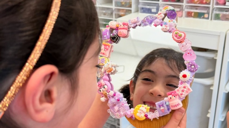 A cool way to decorate a mirror The objective is to affix keychains to either the reflective part or the frame of a mirror. To complete this project, you'll require an adhesive substance such as superglue, hot glue, or Decoden cream—a Japanese adhesive known for drying with a texture similar to whipped cream and often used decoratively. Arrange your mirror and apply the charms onto the surface or around the frame using your chosen adhesive. The curing time depends on which type of glue you select; however, plan for approximately two days until fully set. Afterward, showcase your creation.
